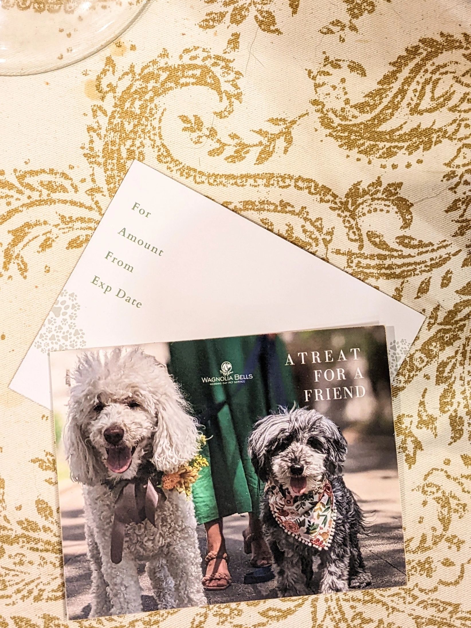 Sent wrapped with special homemade treats, a Wagnolia Bells Gift Certificate is Pawfect for your Pet-Loving Friends who choose to include their Best-Furry-Friends with them during their special events.